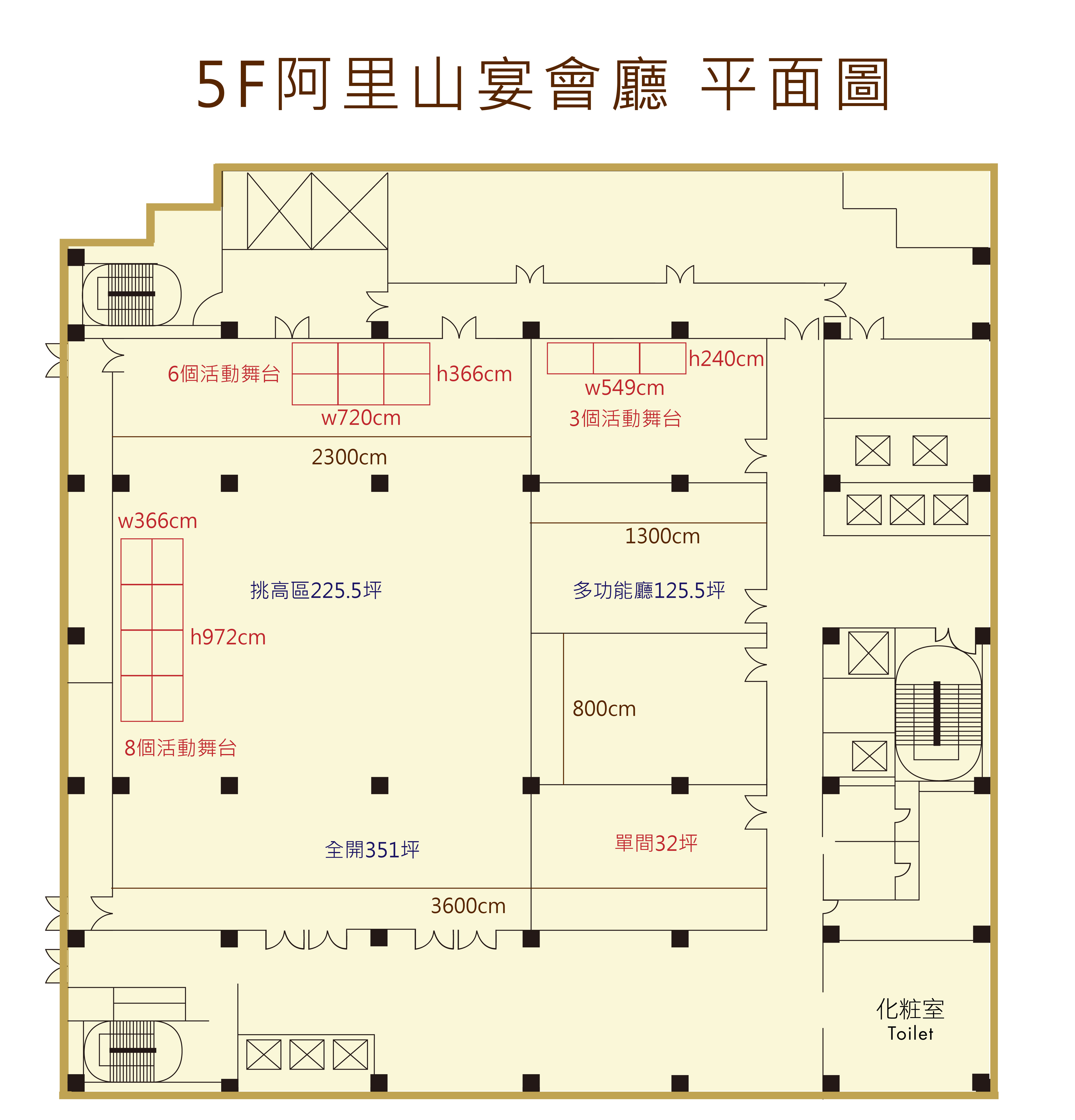 坪數 225.5坪 容納桌數 40桌~65桌 新娘休息室 有 -
